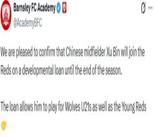 博主敖铭则表示,“徐彬既可以为巴恩斯利U21踢比赛,也可以为狼队U21踢比赛,但仅限U21比赛,确实本赛季暂时是踢不上英甲联赛的。狼队的公告其实也是斟字酌句,不想引发国内球迷过度的期望。大家还是冷静一下吧,英超遥不可及。未来如果在某个赛季的足总杯,看到低级别球队中有中国球员出场,那已经很棒了。”